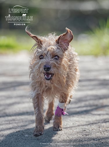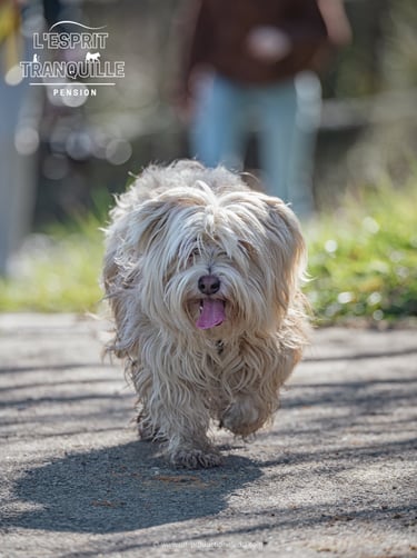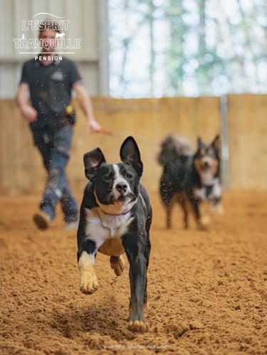 Partez L'Esprit Tranquille en laissant votre chien dans un environnement familial où il sera stimulé et dépensé avec un humain.